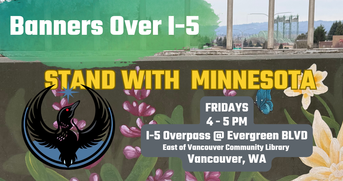 We’re making a bold, visible stand to defend our democracy and push back against the Trump administration’s illegal and unconstitutional actions. During peak commuting hours, we’ll raise our banners high over I-5 to show that our community is awake, united, and ready to fight for what’s right.